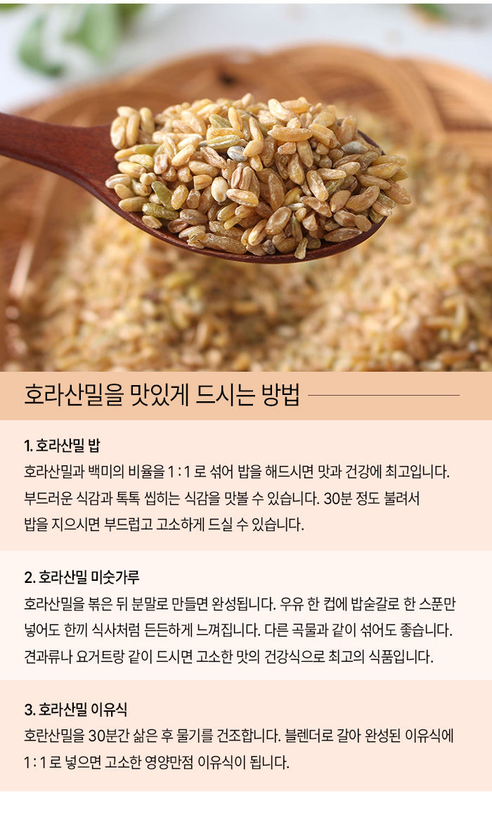 청정지역에서 정성으로 재배한 유기농 호라산밀